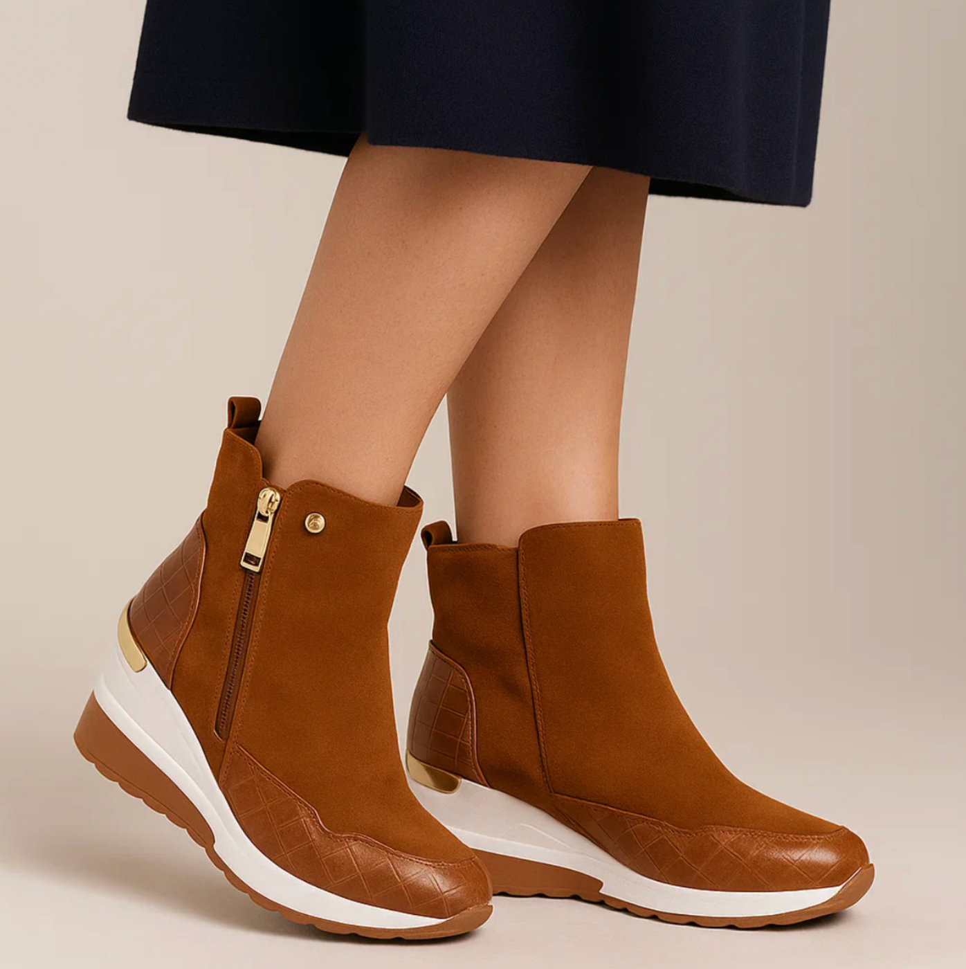 The Automa Boots are ideal for the autumn season: warm, sturdy, and yet lightweight. With the stylish metallic details, a comfortable wedge sole, and a practical zipper, you combine convenience with elegance. Thanks to the rubber non-slip sole, you always have grip – whether you're walking through the city or enjoying an autumn day in nature. Available in multiple colors to complete your outfit.