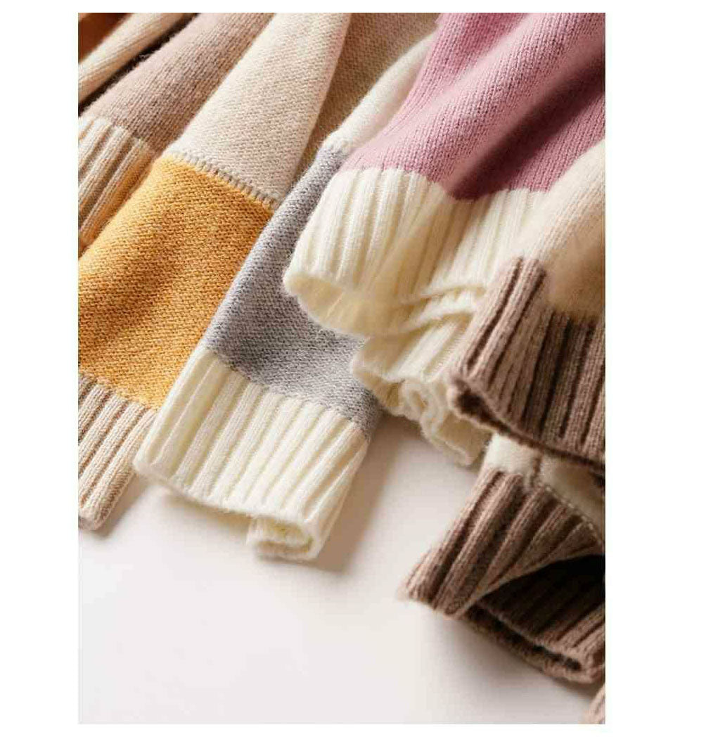 Cashmere sweater with a turtleneck in geometric color blocks
