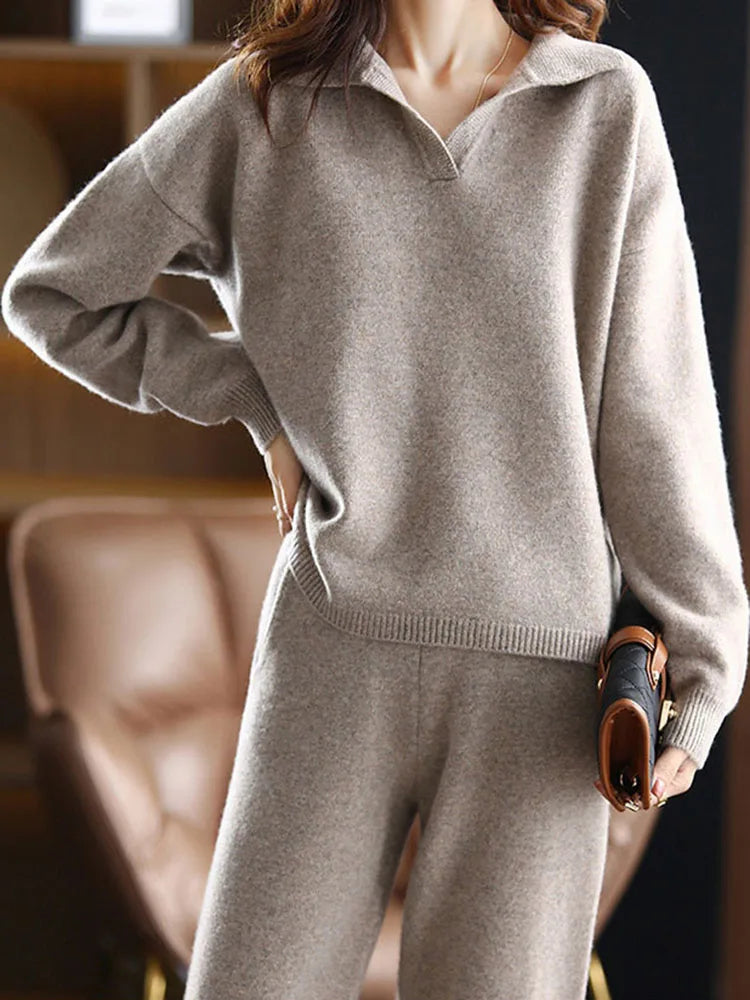 Elegant and comfortable loose, casual sweater + wide-leg pants set, two-piece