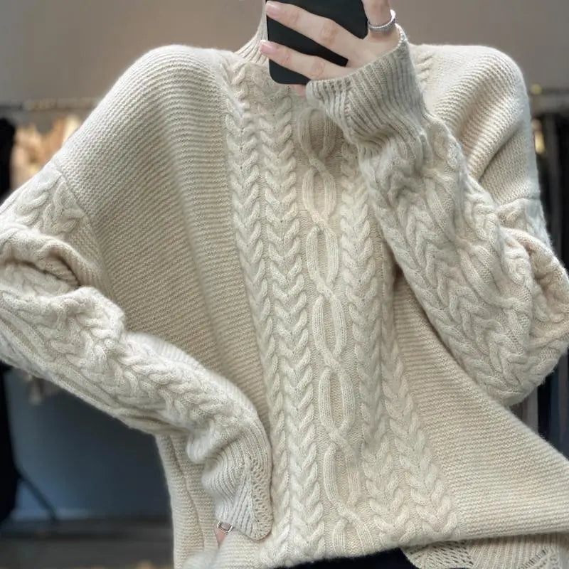 Women's chunky knit turtleneck sweater, designed for everyday wear